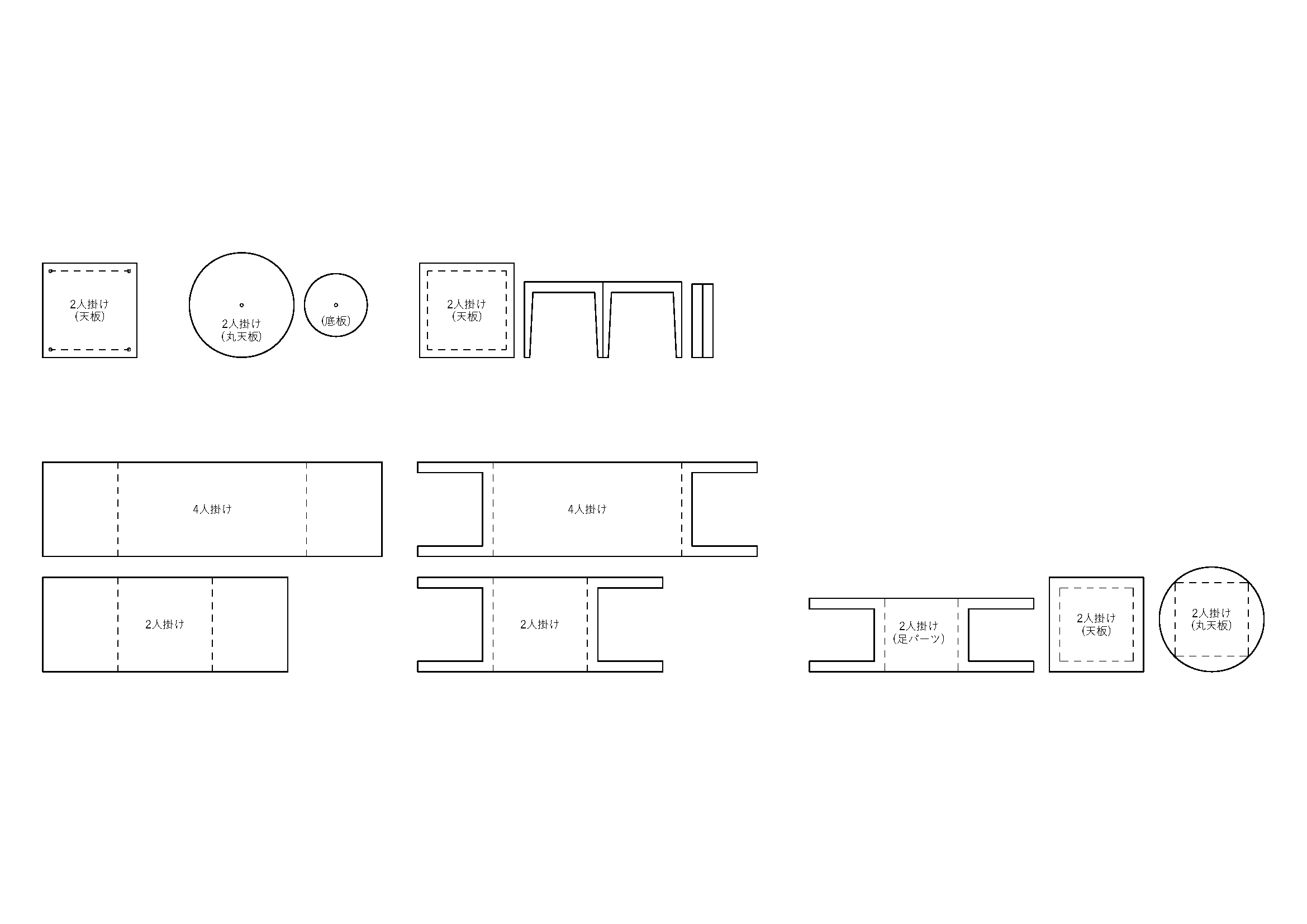 建築模型の添景で使える、テーブルの図面テンプレートです。